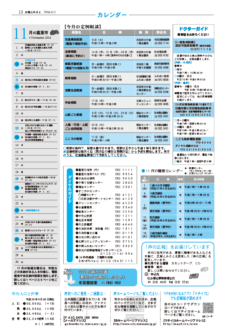 - 【任期付短時間勤務職員を募集】(6ページ掲載)の受験資格の注釈に誤りがありました。(誤)平成28年春季までに→(正)平成29年春季までに