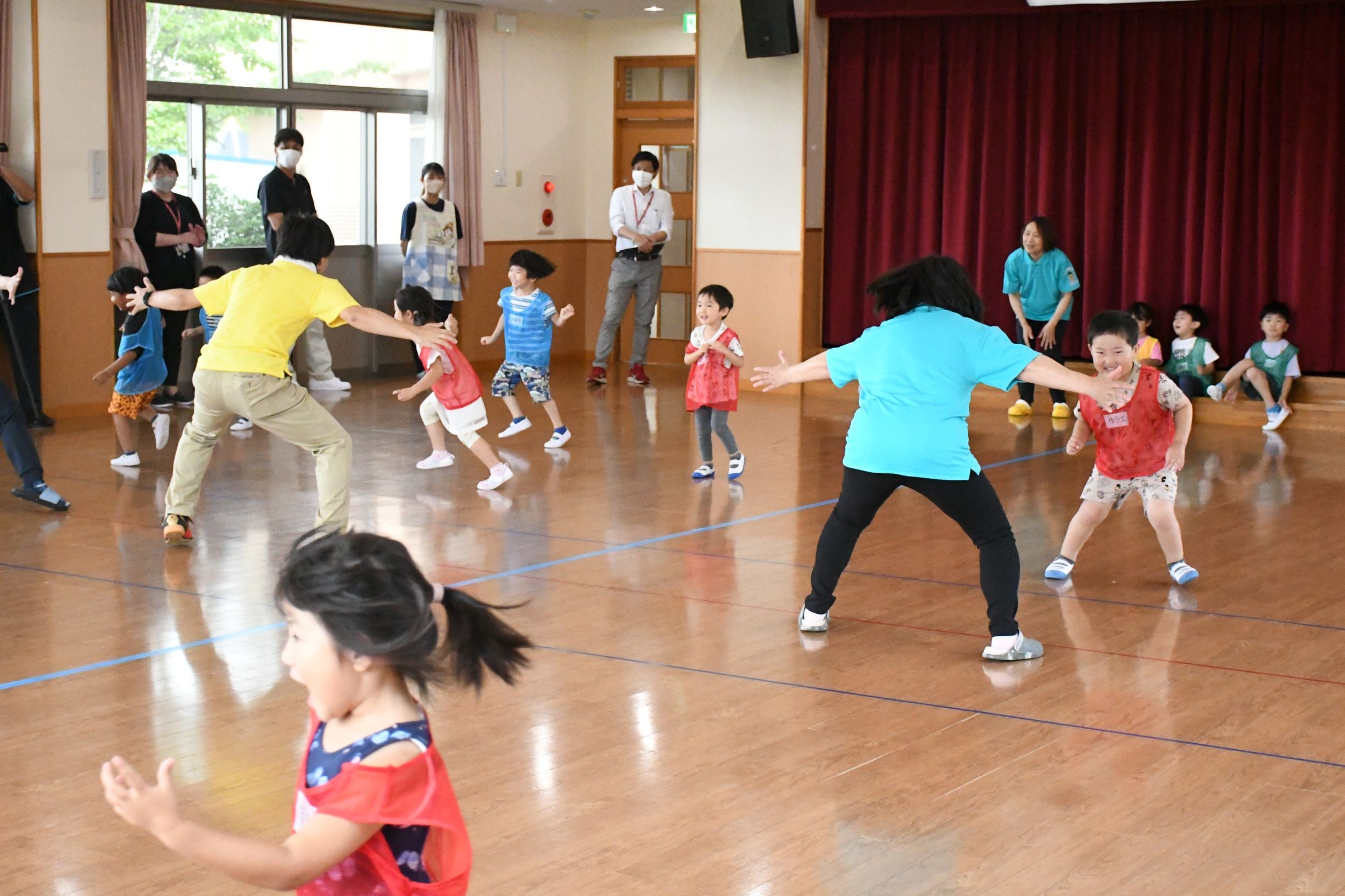 「とみさと元気なまち宣言」の取り組みとして、市内の認定こども園、保育園及び幼稚園において『鬼ごっこを取り入れた幼児期の運動遊び』を行っています。