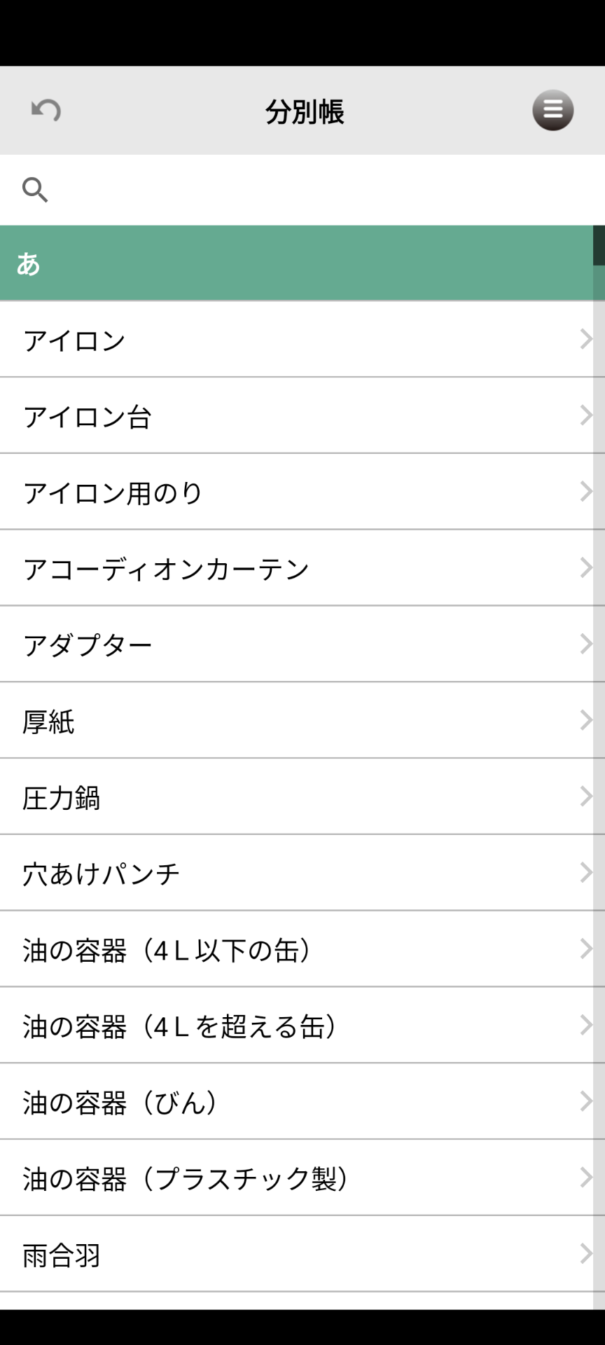 分別検索[ごみの品目名から分別方法を検索できます]