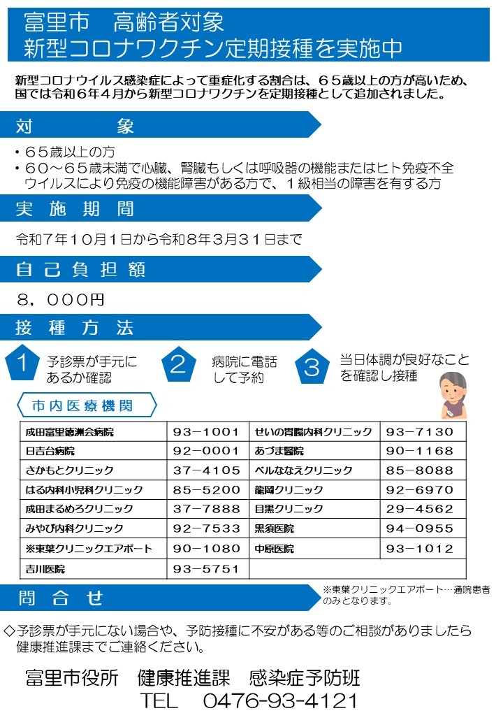 - 令和7年9月末に、65歳以上の接種対象者全員へ個別郵送しました。