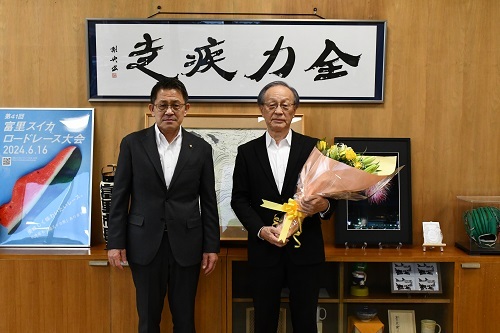 - 元富里市議会議員猪狩一郎様が旭日小綬章を受章され、表敬訪問を受けました。