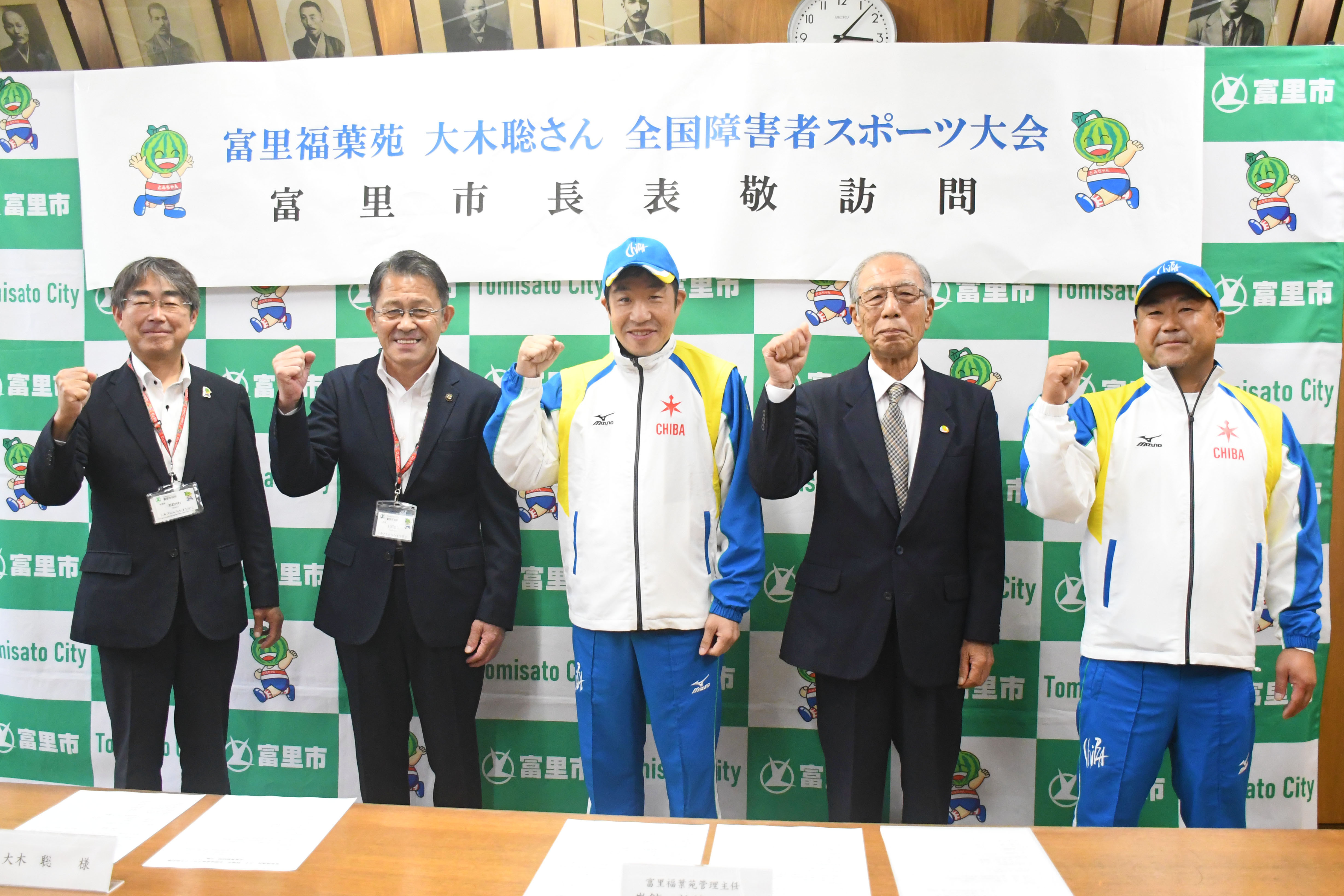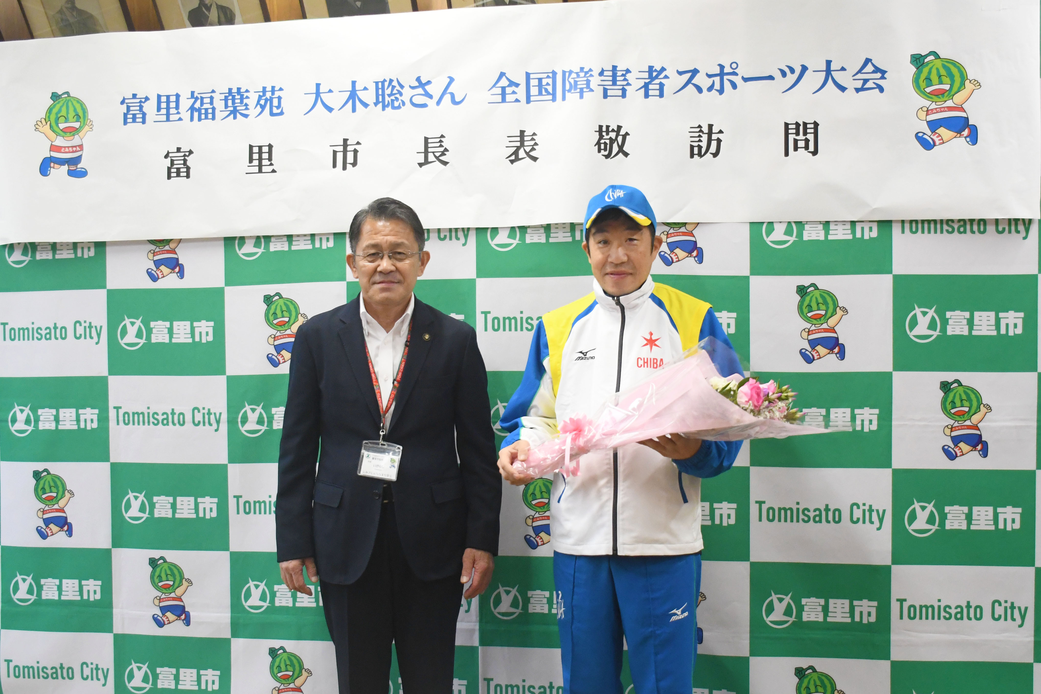 全国障害者スポーツ大会に出場する富里福葉苑の大木聡選手が市長を表敬訪問しました