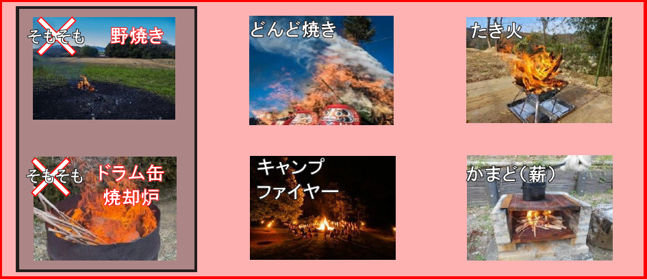 火の使用制限に該当すると考えられる行為(イメージ)