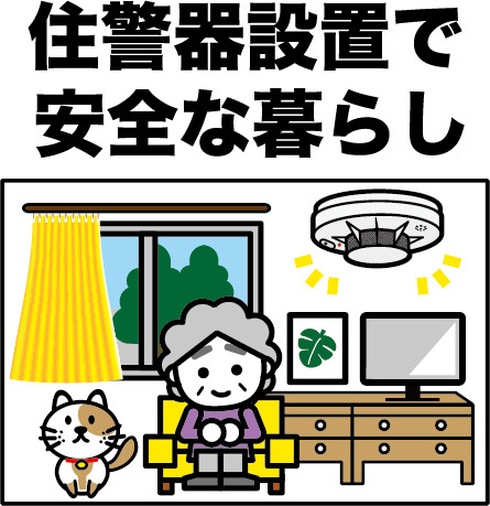- 火災の早期発見のため、住宅用火災警報器を定期的に点検し、10年を目安に交換する。