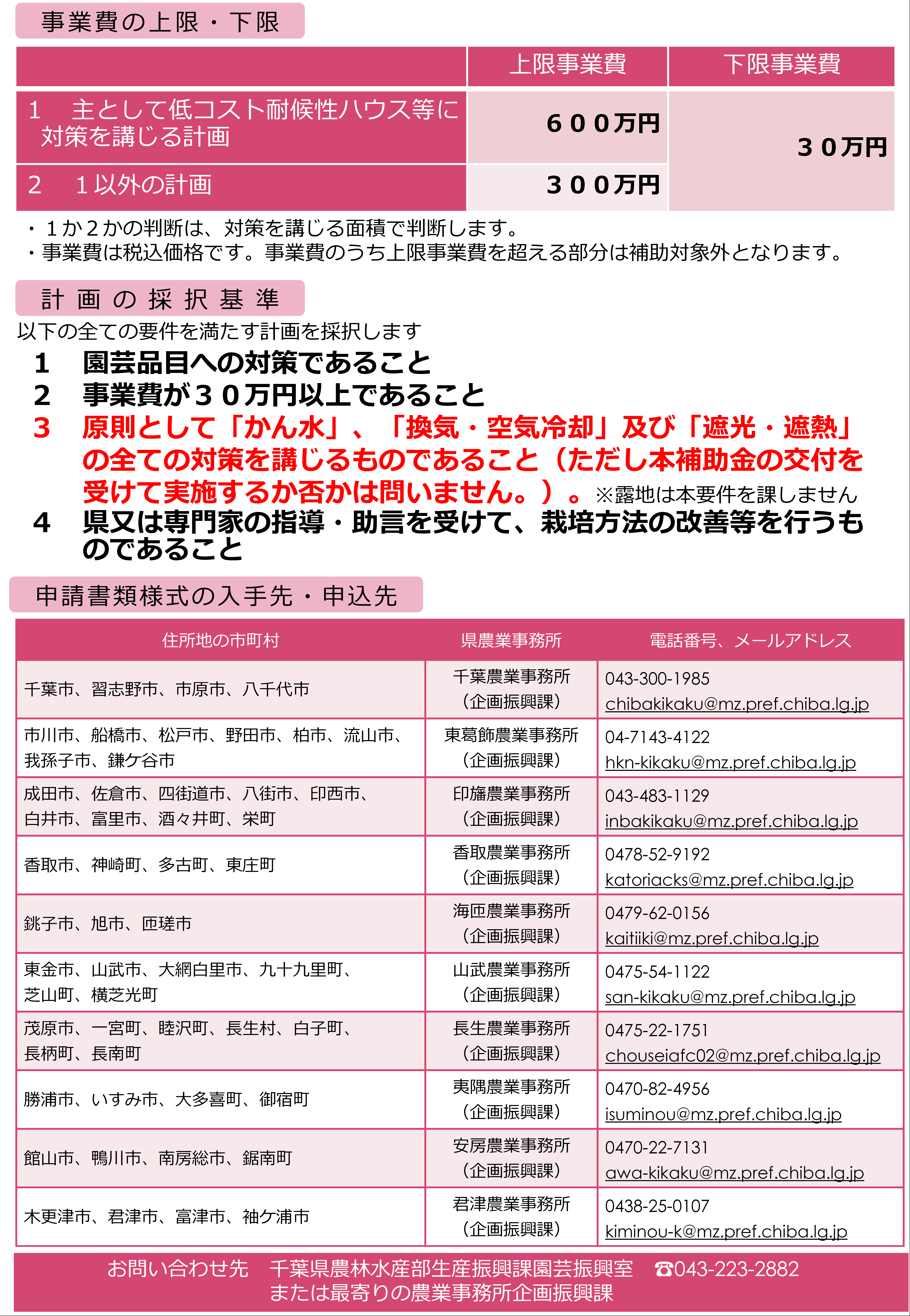 - 印旛農業事務所企画振興課(佐倉市鏑木仲田町8-1/印旛合同庁舎2階)